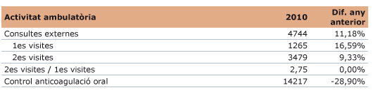 - Canvi del cap de Servei l’abril 2010.