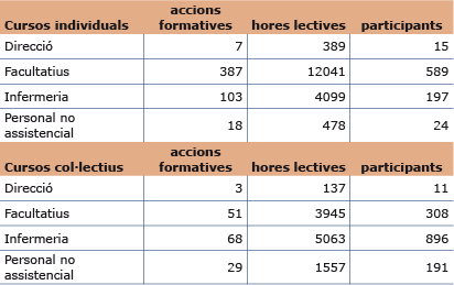 - Formació sobre maneig de situació d'agressivitat en entorn sanitari per al personal d'infermeria d'urgències (66) i salut mental (47).