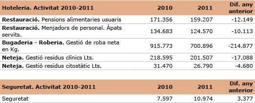 En quant a subministres, s'han reduït els consums en tots ells com a conseqüència de diverses actuacions de millora, sent la reducció en consum elèctric un 5,56%, en Tub Verd un 32,20%, en Gas un 20,00% i en aigua un 7,18%.