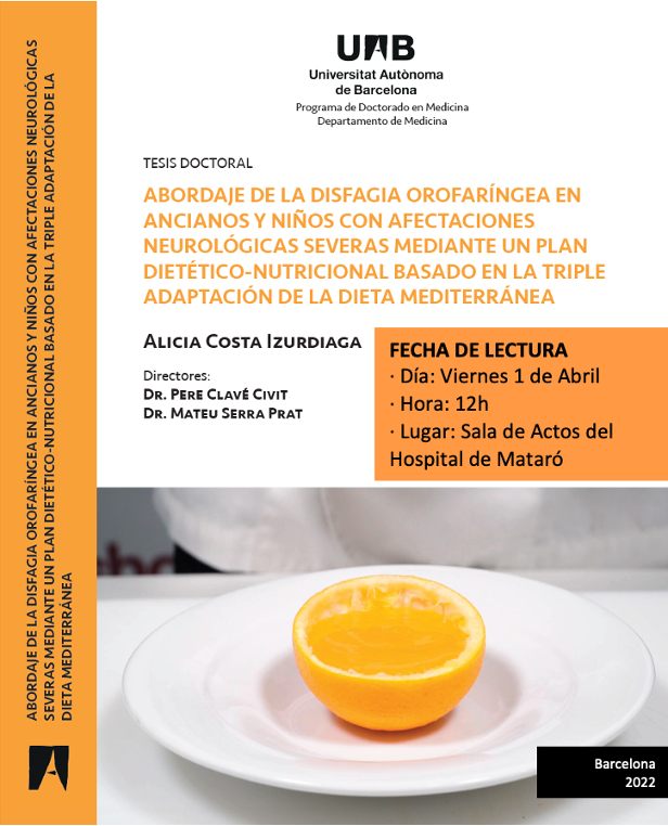 Títol de la tesi: "Abordaje de la disfagia orofaríngea en ancianos y niños con afectaciones neurológicas severas mediante un plan dietético-nutricional basado en la triple adaptación de la Dieta Mediterránea".