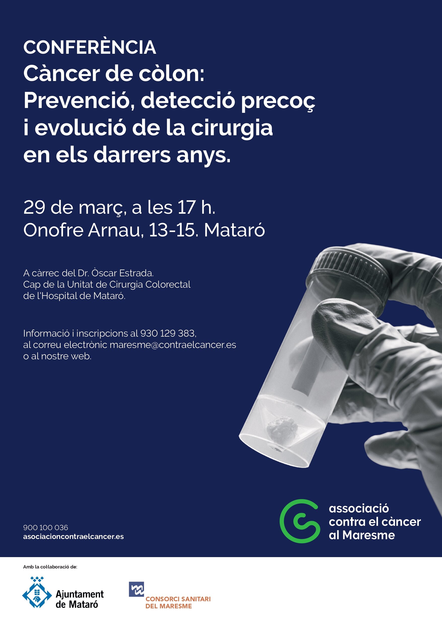Amb motiu del Dia Mundial Contra el Càncer de Còlon, el Dr. Òscar Estrada, especialista en Cirurgia Colorectal de l'Hospital de Mataró realitzarà la conferència “Podem prevenir el Càncer de Còlon? - Importància del diagnòstic precoç”.
