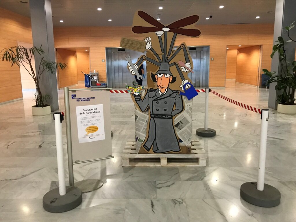 Els pacients infantils, juvenils i adults de Salut Mental han, decorat amb una figura de cartró, el vestíbul de l’Hospital de Mataró per commemorar aquesta diada, que se celebra avui 10 d’octubre.