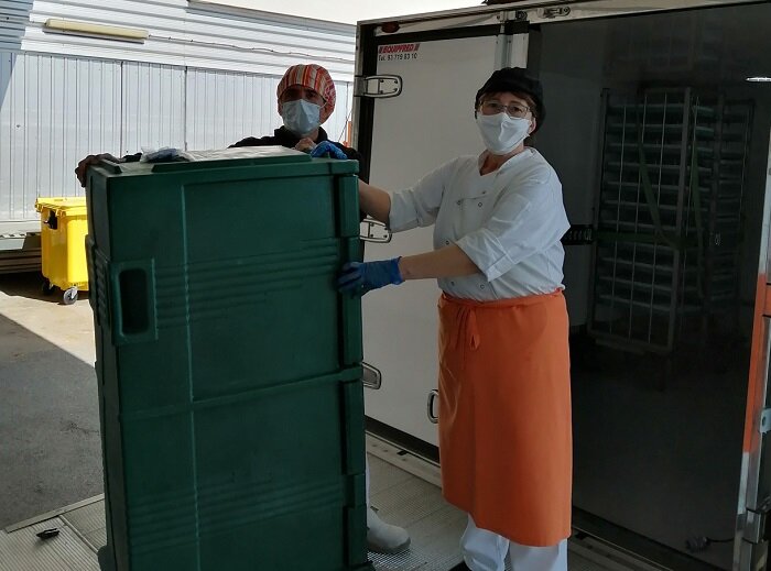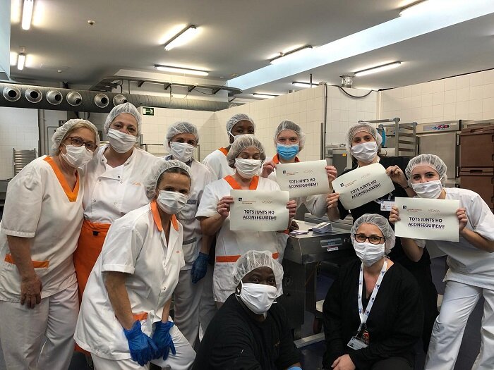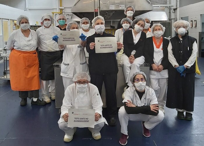 S'han destinat dos equips a aquest servei, que s'encarreguen de la producció del dinar i sopar, així com de deixar preparades al vespre les safates amb els esmorzars de l'endemà. La resta de personal de restauració de tots els centres s’ha adaptat a les necessitats específiques d’aquest moment i aplica les mesures de seguretat i protecció necessàries per evitar el contagi.