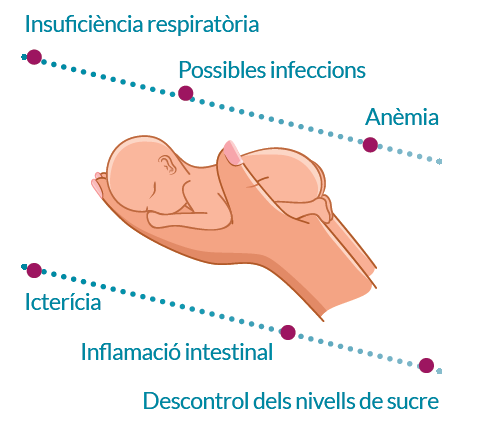 La supervivència de bebès prematurs amb més de 28 setmanes arriba al 95% a Espanya i, excepte els que neixen amb una malaltia congènita greu, la resta supera les complicacions que presentava en néixer. Tot i això, la majoria de nadons prematurs han de ser atesos a la Unitat de Neonatologia, ja que neixen amb una immaduresa dels seus òrgans i sistemes (cervell, respiració, control de temperatura, digestió, metabolisme, etc.) que els fa més vulnerables a les malalties i més sensibles als agents externs (llum, soroll, etc.). Les principals complicacions són: