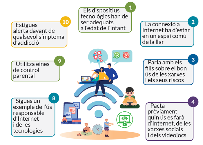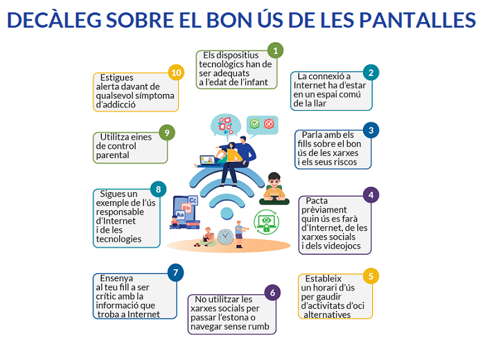 Prevenció. Per prevenir una possible addicció, els experts aconsellen seguir el següent Decàleg sobre el bon ús de les pantalles: