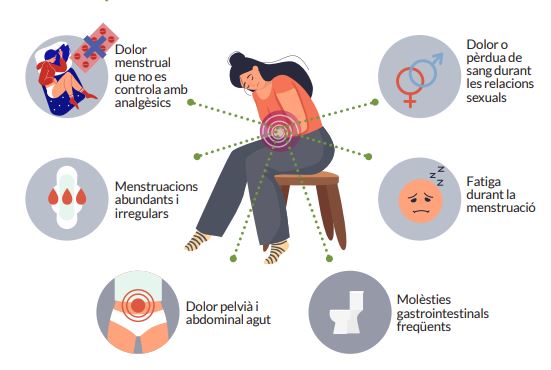 A la majoria de dones que pateixen endometriosi, la menstruació no els permet fer una vida normal i pateixen els següents símptomes: