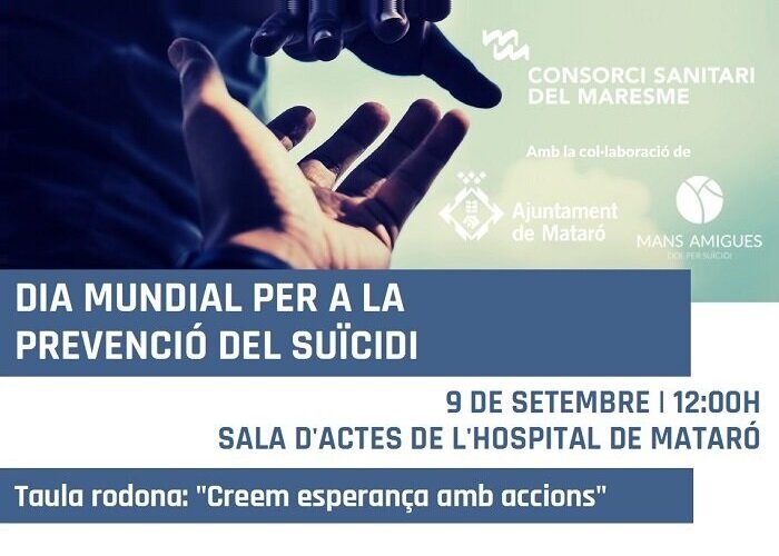 El Consorci, en col·laboració amb l'associació mataronina Mans Amigues i l'Ajuntament de Mataró, organitza una taula rodona el 9 de setembre per commemorar el Dia Mundial per a la Prevenció del Suïcidi. L'acte, que està obert a tothom interessat a contribuir en la prevenció d'aquest fenomen (sanitaris, docents i ciutadania en general), tindrà lloc a les 12h a la Sala d'Actes de l'Hospital de Mataró.