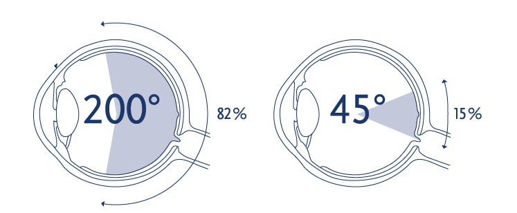 Les imatges actuals abasten el 82% de la retina, tant en panoràmica com de zones concretes ampliades, mentre que l'anterior equip només captava imatges d'un camp molt més reduït (15%). Això permet detectar de forma precoç moltes malalties de la retina, entre elles els esquinçaments retinals que precedeixen un despreniment de retina o la isquèmia perifèrica.