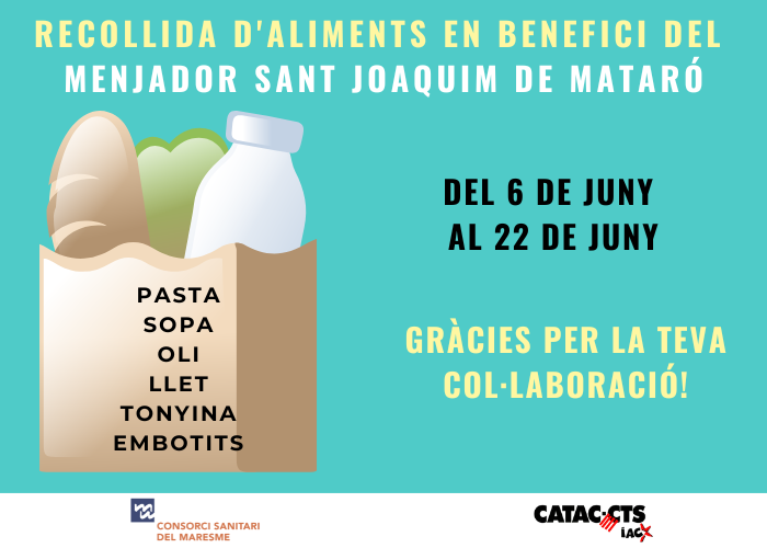 Socialment responsables. Aquesta campanya solidària s'emmarca en la nostra política de responsabilitat social corporativa (RSC) per potenciar l'efecte positiu que, com a organització, tenim en la nostra comunitat. Per aquest motiu, donem suport a una iniciativa del sindicat CATAC, que té una trajectòria d'anys de col·laboració amb aquesta entitat social mataronina.