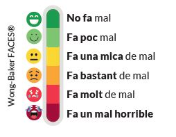 Comunicar el dolor. El pacient ha de ser conscient que és molt important que ell mateix comuniqui els tipus de dolor que pateix i la intensitat. La unitat del dolor agut utilitza una escala per saber el dolor que pateix, tant el pacient adult com el pediàtric: