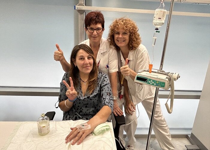 L'Esther Sánchez té 45 anys i durant la infància se li va diagnosticar deficiència de la proteïna alfa-1 antitripsina, una condició que no té cura i que pot requerir tractament de per vida. Durant els últims quatre anys, l'Esther anava cada 15 dies a l'hospital de dia de pneumologia, on se li administra el tractament mitjançant una injecció per via intravenosa. Això, però, acaba de canviar: s'ha format per poder injectar-se ella mateixa el medicament, a casa, i guanyar així en autonomia i qualitat de vida.