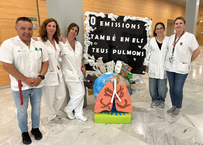 Hospital de Mataró. Una taula a l’entrada principal, on professionals del Consorci informaran sobre les opcions de deshabituació tabàquica i faran proves de carboximetries.