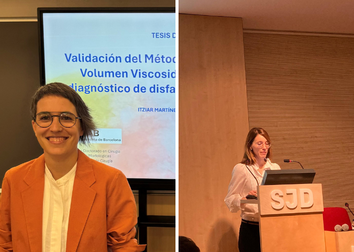 La tesi doctoral de la Itziar Martínez de Lagrán es titula "Validació del Mètode d'Exploració Clínica Volum Viscositat modificat per al diagnòstic de disfàgia en el pacient crític" i l'objectiu d'aquesta tesi és validar un nou mètode per al diagnòstic de la disfàgia en pacients crítics, tant en aquells que han estat extubats com en els que porten cànula de traqueostomia. A més, analitza la prevalença de la disfàgia, els seus factors de risc i la recuperació dels pacients durant un seguiment de 60 dies.