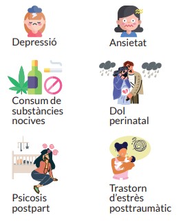 Etapa molt sensible. Durant l'embaràs i el primer any després del part, la dona experimenta molts canvis hormonals, fisiològics i emocionals que poden derivar en ansietat, problemes de la son o depressió. A més, possibles traumes emocionals previs o trastorns de salut mental preexistents que es manifesten amb més força durant aquest període.