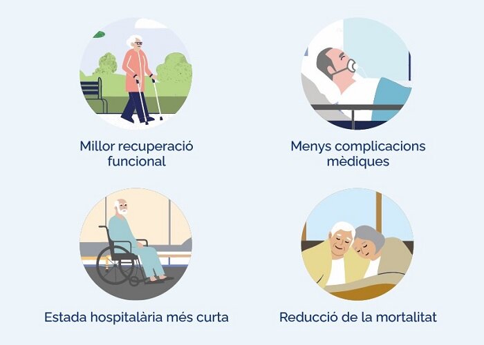 Beneficis per als pacients. La combinació d'una cirurgia precoç amb l'inici immediat de la rehabilitació permet reduir el temps d'immobilització, escurçar l'estada hospitalària i afavorir una millor recuperació funcional. A més, aquest abordatge contribueix a disminuir les complicacions mèdiques i la mortalitat associada a aquestes lesions.