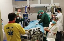 La complexitat de la tècnica obliga al desplaçament d’un equip multidisciplinari des de l’Hospital Germans Trias amb intensives, cirurgians cardíacs i personal d’infermeria entrenats per iniciar la tècnica a l’Hospital de Mataró i traslladar el pacient en ambulància medicalitzada connectat al circuit extracorpori.