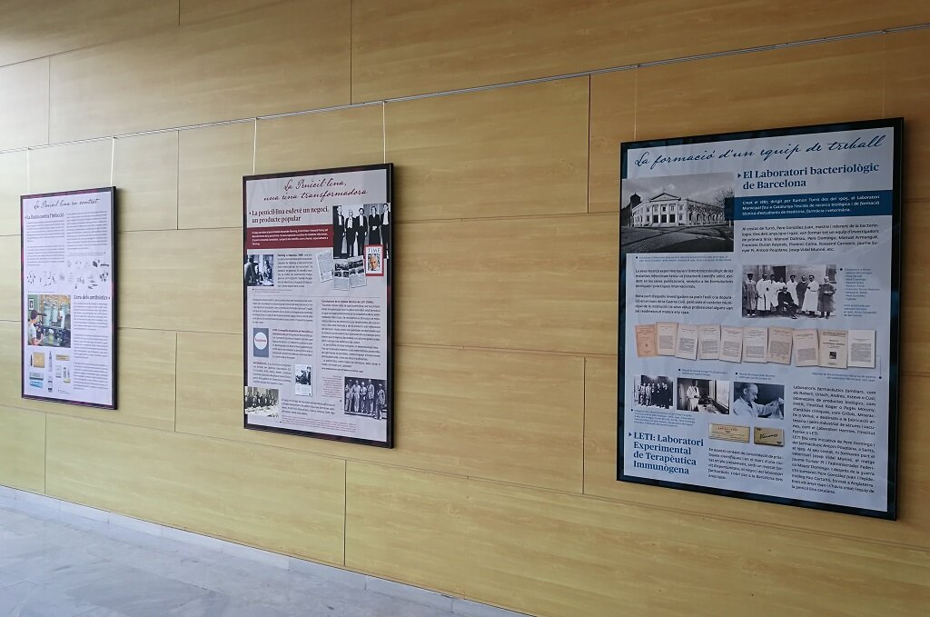 L’exposició està basada en el llibre “Aportació de Catalunya a la història de la penicil·lina”, escrit per Jordi Almirall i Xavier Granero. A través de 6 grans panells s’explica breument la història del descobriment d’aquest antibiòtic, però centrant-se en els fets que van succeir a Barcelona fa 75 anys. Quan la penicil·lina estava bloquejada a Anglaterra en plena segona Guerra Mundial, un grup de científics varen aconseguir produir-la aquí de manera artesanal a partir d’una soca que els hi va fer arribar un amic. Aquest fet va suposar que molts catalans poguessin ser tractats amb aquest antibiòtic, quan encara ningú a la resta d’Europa en podia disposar.
