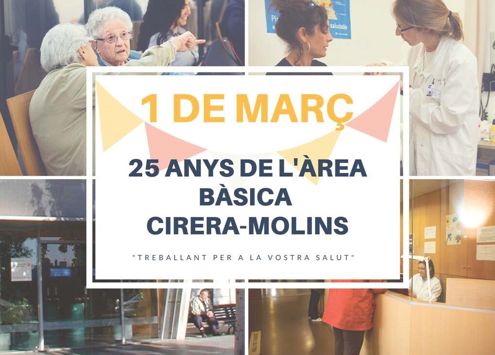 L’1 de març l’Àrea Bàsica de Salut Cirera-Molins celebrarà el seu 25è aniversari sota el lema “Treballant per a la vostra salut”.