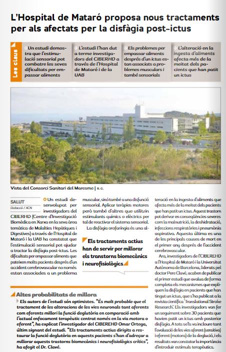 L'Hospital de Mataró proposa nous tractaments per a la disfàgia post-ictus