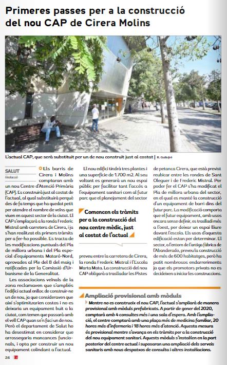 Primeres passes per a la construcció del nou CAP de Cirera Molins