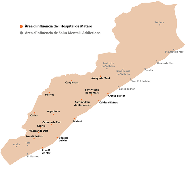 Salut Mental i Addiccions: el CSdM dóna servei de salut mental i addiccions a una població de 449.880 persones situada a la comarca del Maresme.